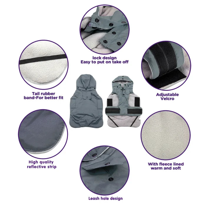 Built to withstand the elements, our Dog Coat Winter Jacket is made from durable materials that maintain their shape and functionality over time. The water-resistant outer shell keeps your dog dry and comfortable in rainy conditions, while the fleece lining provides insulation against chilly winds. Whether your pup enjoys playing in the snow or taking leisurely walks, this jacket offers protection and warmth throughout the winter season.