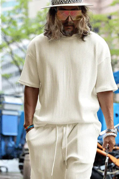 Men's Full Size Waffle-Knit Contrast Polo and Pants Set Plus Size