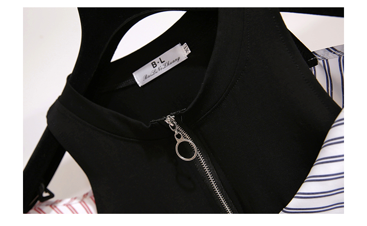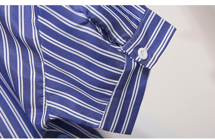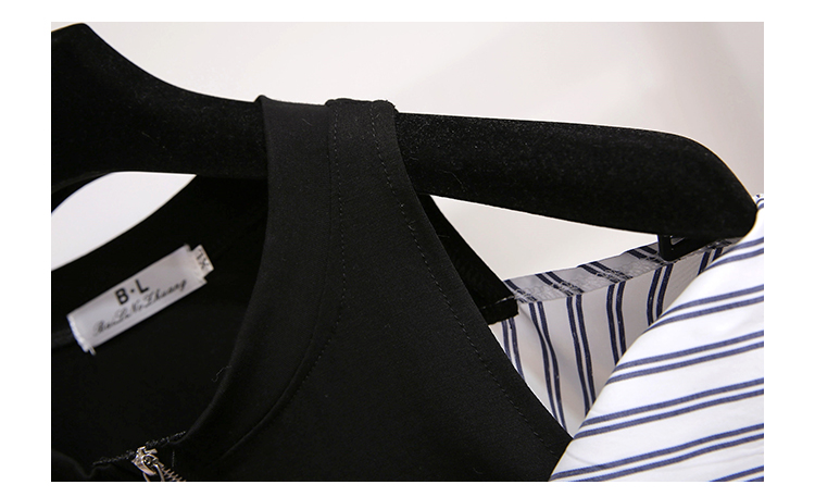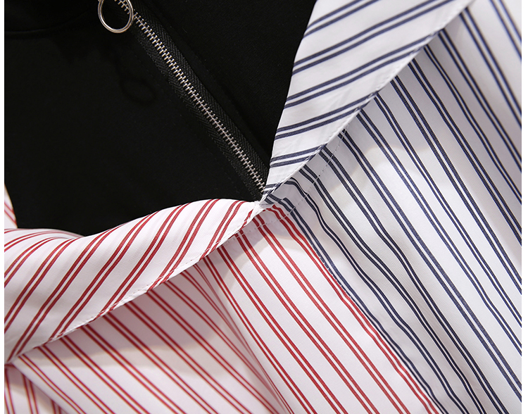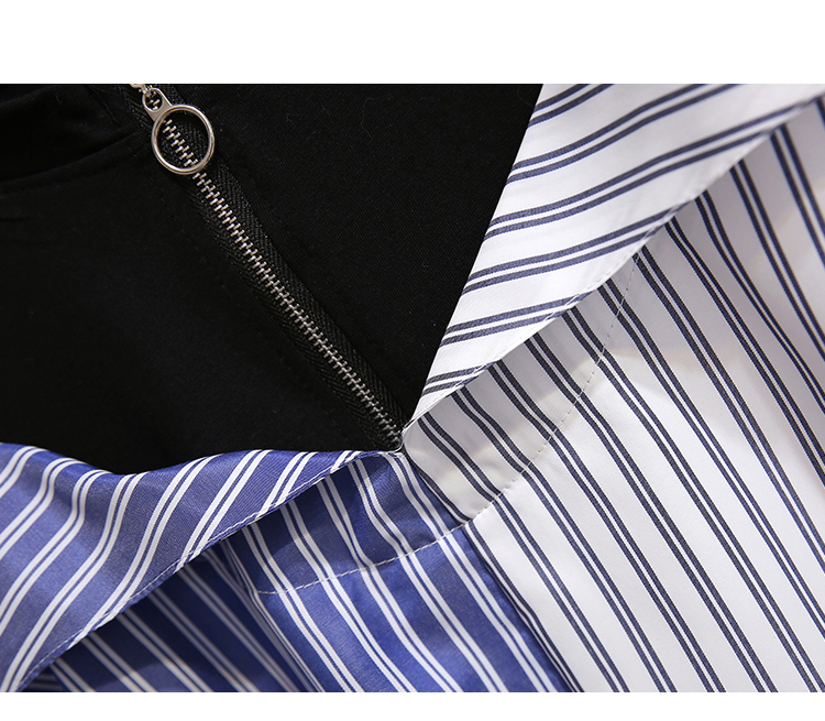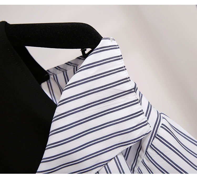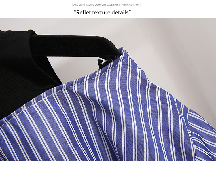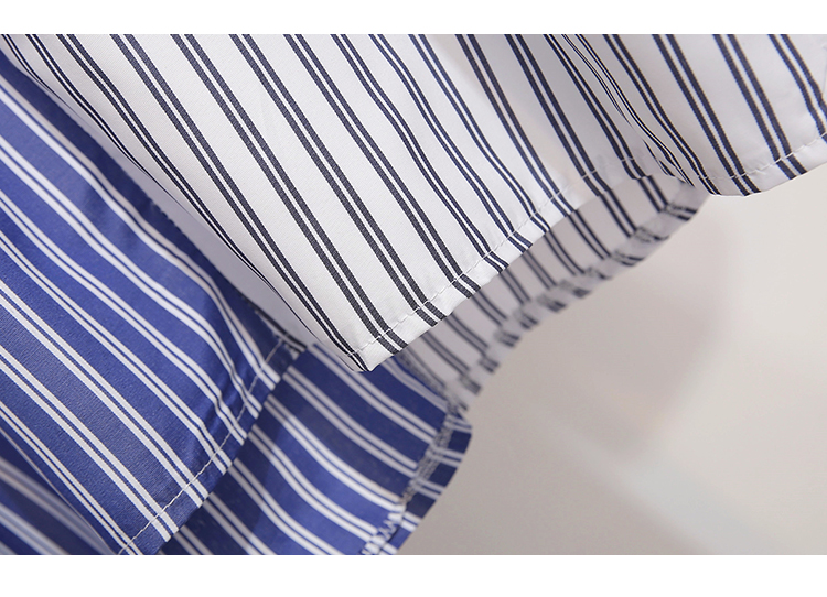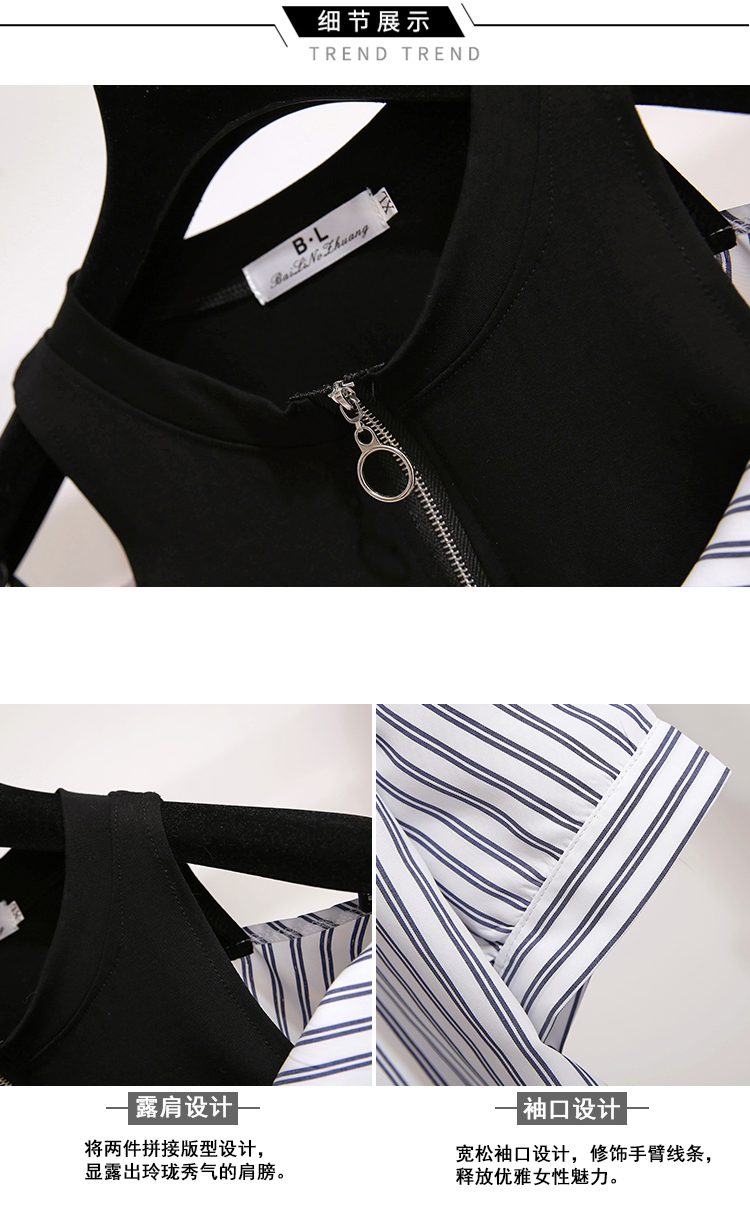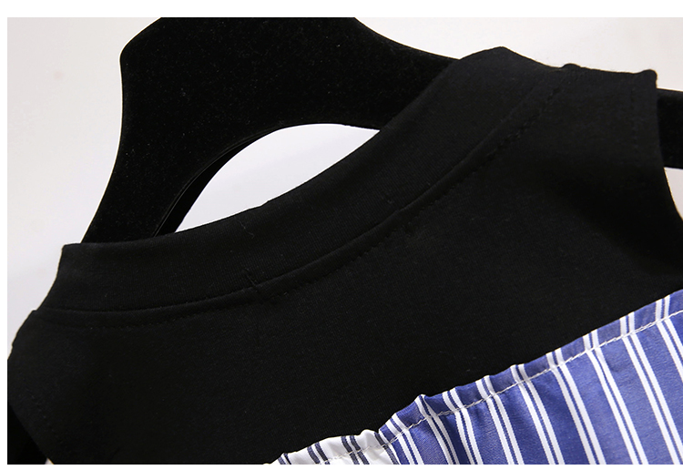 2021 summer all-match net red stitching striped short-sleeved shirt fake two-piece off-the-shoulder top women's jeans two-piece set